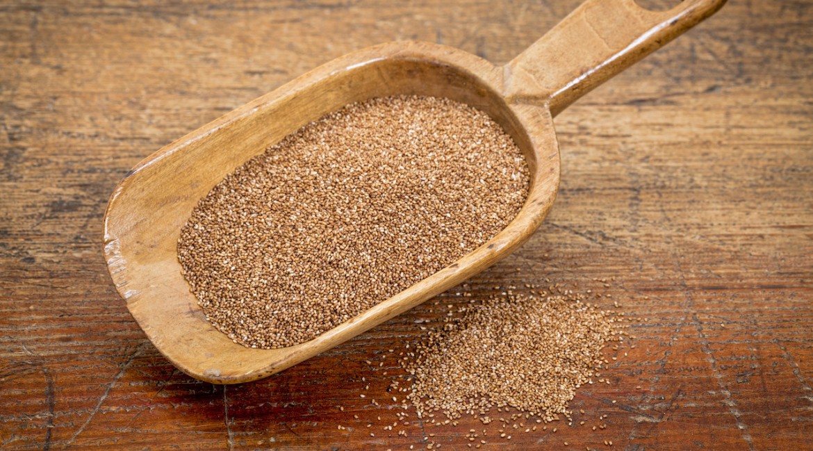 テフは鉄分、カルシウム、亜鉛などのミネラルに富み、エチオピア人が摂取しているたんぱく質の2/3をテフで賄っているといわれるほど、たんぱく質を多く含有しています。また、食物繊維やビタミンも豊富なので、エチオピアの長距離ランナーたちは、彼らのエネルギーと健康はテフによるものと信じてきました。さらに、腸内細菌に対して良い影響を与えるレジスタントスターチ(難消化性でんぷん)も含有しています。このように小さな粒に多くの栄養成分を持っていることから、一説には“小さな巨人”と称されています。